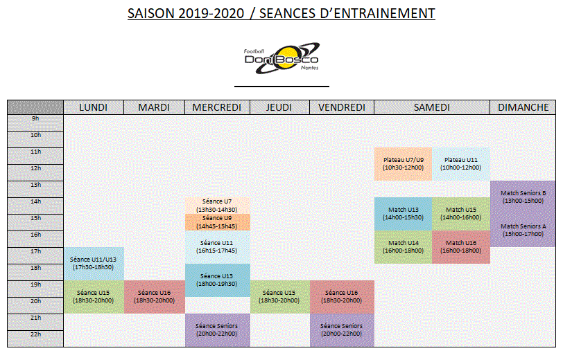 - Deux entraînements par semaine Mardi soir : 18h30-20h00